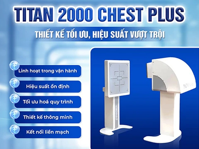TITAN 2000 Chest Plus là hệ thống X quang KTS chụp tim, phổi, được trang bị cấu hình mạnh mẽ. Thiết kế tối ưu, linh hoạt, tiết kiệm không gian với hiệu quả thăm khám cao, đáp ứng số lượng bệnh nhân lớn, đặc biệt phục vụ công tác khám lưu động.